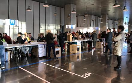 Este domingo, migrantes ecuatorianos acudieron a sufragar desde temprano al complejo Caja Mágica, ubicado en un barrio periférico de Madrid, en España.