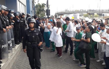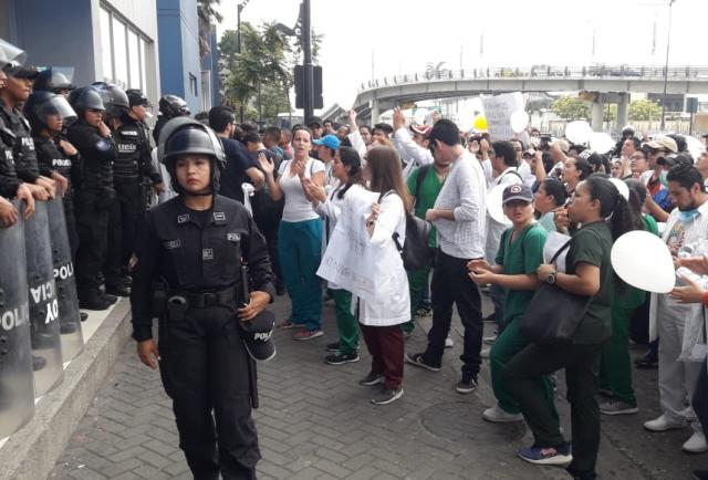 Por segundo día consecutivo, estudiante de Medicina de la Universidad de Guayaquil, que realizan su internado rotativo en diferentes hospitales del país, salieron este miércoles 15 de mayo del 2019 a las calles, para exigir un estipendio justo por la labor que realizan en las casas asistenciales.