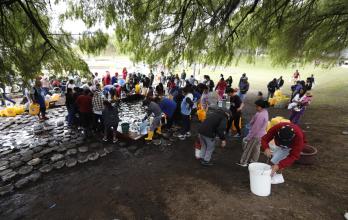 Desde que se iniciaron los cortes, provocados por una rotura en la tubería Mica Quito Sur, vecinos de barrios como El Ejército, La Concordia, Paquisha, El Beaterio, Argentina, Guamaní, Valle Verde y El Paraíso llegan al parque a buscar el líquido vital. “Hasta las 12 de la noche la gente viene con baldes, bidones y tanques”, afirmó Tumaylle.