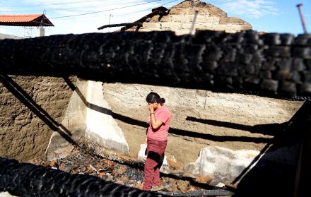 Rosa Elena Escobar recuerda con pesar la tragedia que le arrebató la vivienda que arrendaba junto a su familia, en Bellavista de Calderón, en el norte de Quito. Un voraz incendio destruyó la casita que albergaba las cosas de estas personas humildes luego de que, aparentemente, un rayo cayó sobre el techo de teja.