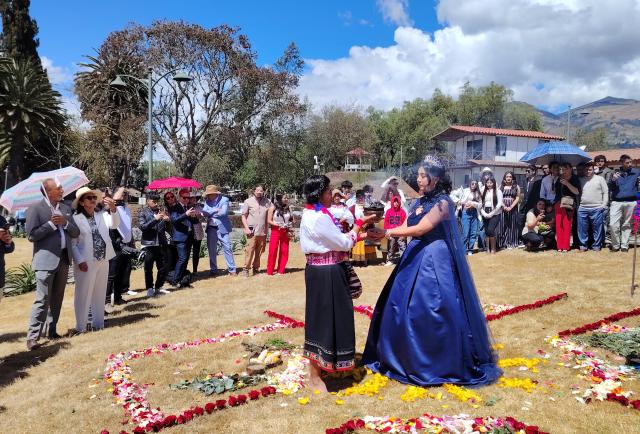 Adornada con flores rojas y hierbas dulces y amargas, la chacana fue el centro del ritual de florecimiento que marcaría su tránsito de niña a mujer. El escenario, la hacienda Nagsiche, en la parroquia Mulalillo del cantón Salcedo, fue testigo de la celebración de los 15 años de la tercera hija de la prefecta de la provincia de Cotopaxi, Lourdes Tibán.