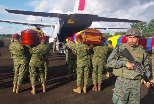 Los cuerpos fueron llevados a Lago Agrio, donde se levantó una capilla ardiente. La tarde de este sábado 10 de mayo, el Ejército Ecuatoriano informó que "sus compañeros de armas y autoridades militares despidieron a los soldados en la misma zona donde ofrendaron su vida en cumplimiento del deber. En este sector de la Amazonía ecuatoriana, se dio honores que reflejaron el valor, la entrega y el sacrificio de quienes defendieron a nuestro país".