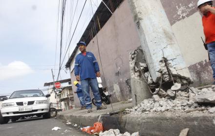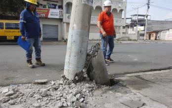 Accidente en Guayaquil deja una mujer herida y un poste dañado. Vecinos exigen semáforo en la intersección de las calles 27 y la K
