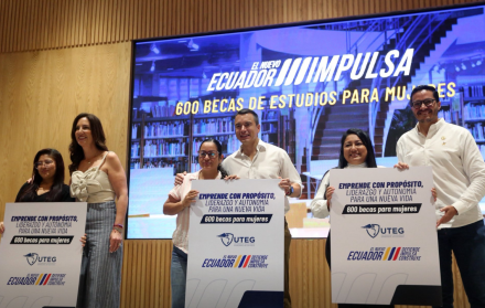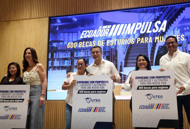 El Gobierno del Nuevo Ecuador entregó este viernes 600 becas a mujeres que forman parte del programa de Educación Continua “Emprende con propósito, liderazgo y autonomía para una nueva vida”. Las beneficiarias accederán a formación académica virtual en liderazgo, capacidades técnicas, marketing, educación financiera y emprendimiento. De las 600 becas, 300 iniciarán sus estudios en octubre de 2025 y el resto comenzará en 2026.