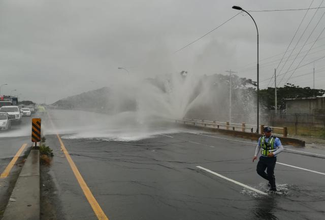 Personal de Interagua llegó para inspeccionar el daño, pero no pudieron controlarlo porque la tubería pertenece a la concesionaria Amagua. Cerca de las 08:00, llegó una cuadrilla para cerrar el pase del fluido.