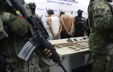 Dos ciudadanos pertenecientes a un Grupo de Delincuencia Organizada (GDO) fueron capturados junto a un arsenal de armas y municiones en un inmueble en el sector de Flor de Bastión, uno de los sectores más conflictivos y violentos, al noroeste de Guayaquil.