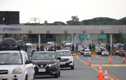En el pesaje de Chongón, en el kilómetro 24 de la Vía a la Costa, se habilitaron doce cabinas de cobro para los vehículos que llegaban en el sentido Salinas-Guayaquil, dejando solo cuatro para quienes viajaban hacia la costa.