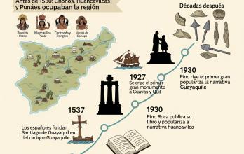 “El historiador Ángel Véliz Mendoza fue quien escribió acerca de estos desplazamientos chonos y propuso que Guayaquile era un jefe indígena real. La ciudad tomó su nombre de ese personaje, no de una leyenda romántica”, comenta Hidalgo.