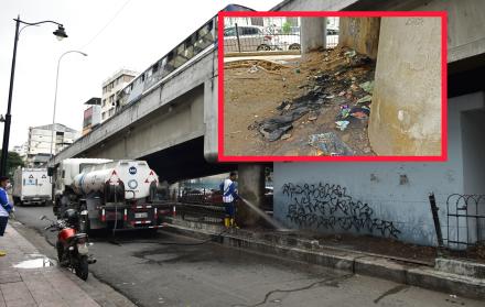 El hedor descrito en la nota de este Diario atrajo a una cuadrilla de 20 trabajadores municipales, equipados con escobas, mangueras y agua a presión. Incluso arribó personal de Segura EP, para desalojar y poner orden. Pero aunque el olor ya no castiga las narices, la lucha por mantener limpio este puente está lejos de terminar.
