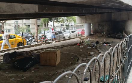 El sol apenas asoma en Guayaquil, pero el ambiente bajo el paso a desnivel entre las avenidas Olmedo y Chimborazo ya es asfixiante. A solo cinco cuadras del Municipio y frente a la Casona Universitaria, esta estructura parece resistirse al bullicio característico del centro.