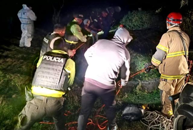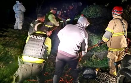 Alarmados, dieron aviso al ECU-911 en Ambato. Horas después llegaron al sitio personal del Cuerpo de Bomberos de Patate, agentes de la Policía Nacional y equipos de Criminalística y de la Dinased. El rescate fue complejo, por lo empinado del terreno y las condiciones de los cuerpos.