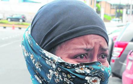 Rosa Braulio llora la partida de su madre afuera del hospital IESS Quito Sur, en el sur de la ciudad. Su progenitora ingresó la semana pasada a la casa de salud con un cuadro de insuficiencia renal crónica, pero su hija sacó su cadáver y la causa de muerte que estaba escrita en el acta de defunción era por coronavirus.