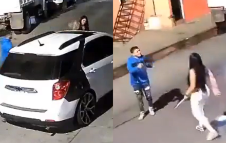 Él llegó en una camioneta blanca, ella lo enfrentó con una escoba.