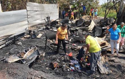 El incendio provocado por la explosión de un cilindro de gas, dejó a cinco familias guayaquileñas en la calle.