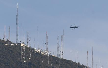 Helicóptero es utilizado para controlar este incendio forestal registrado en las laderas del Pichincha, en Quito. Cuerpo de Bomberos combate el fuego