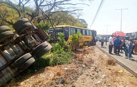 Un incidente de tránsito se registró al mediodía de este jueves 24 de julio, en Guayaquil. La emergencia se produjo en la vía Perimetral, en un tramo ubicado cerca de la terminal terrestre en construcción.
