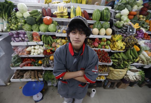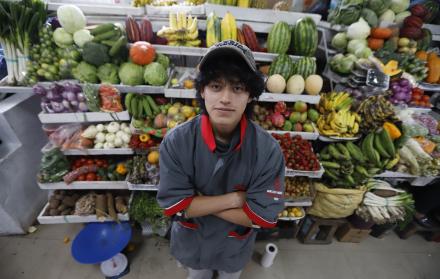 Tiene 20 años y se ha convertido en el centro de atención de la sección de frutas del Mercado de Santa Clara, en Quito. Le ‘llueven’ los ‘vaciles’.