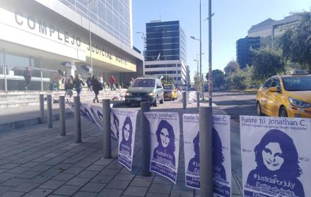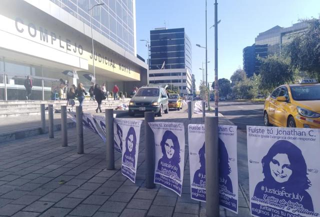 Un plantón se desarrolló en el Complejo Judicial Norte, ubicado en la avenida Amazonas, al norte de Quito. “Por Juliana, verdad y justicia”, “devuelvannos a Juliana”, fueron algunas de las consignas que los manifestantes coreaban a las fueras del sitio, acompañados de pancartas y fotografías de la muchacha.