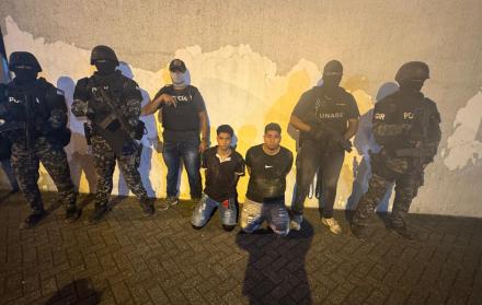 Durante el operativo fueron aprehendidas dos personas: Jonnathan Mauricio Pluas Torres y Enrique Israel Vélez López, ambos de 22 años, ecuatorianos y sin antecedentes penales.