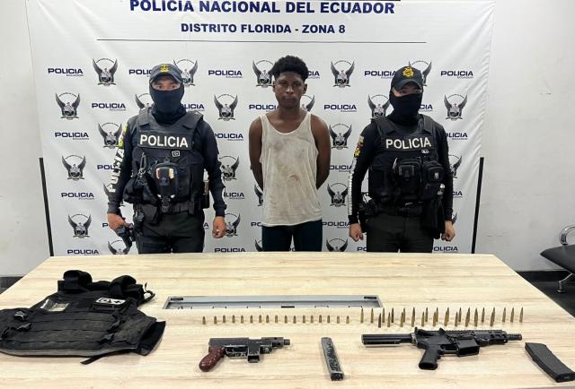 La noche de este domingo 3 de agosto de 2025, un operativo policial ejecutado en el sector de Nueva Prosperina, al noroeste de Guayaquil, permitió la aprehensión de un ciudadano que portaba un arma de fuego tipo fusil. Además, se incautó un subfusil, cartuchos y un chaleco antibalas.