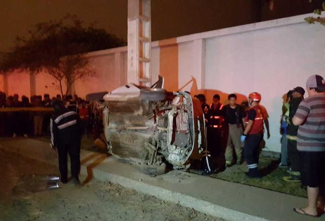 A las 23:00 del lunes 18 de junio, un terrible accidente de tránsito alarmó a conductores y peatones de la avenida Carlos Espinoza Larrea o vía Salinas–La Libertad, cuando un auto Suzuki Forza color blanco —de placa GJF 288— perdió pista y se estrelló contra el parterre central de la arteria. Por la fuerza del impacto el vehículo se levantó en el aire y terminó incrustado en un poste que sostiene cables eléctricos de alta tensión.