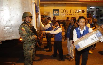 Los 395 kits electorales, que llegaron pasadas las 19:00, fueron trasladados desde el Centro de Integración de Material Electoral de Quito, custodiados por los miembros de las Fuerzas Armadas. A este material electoral se suman los cuatro kits que arribaron el pasado lunes 18 de junio, con el fin de cumplir la jornada de sufragio de las Personas Privadas de la Libertad (PPL) y los beneficiarios del programa Voto en Casa.