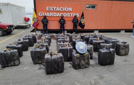 El cargamento fue presentado la mañana de este lunes 8 de noviembre en la Estación de Guardacostas del Puerto de Manta.