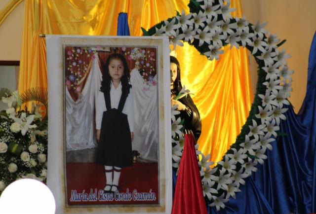 En la capilla de la Unidad Educativa Mariana de Jesús, ubicada en las calles Olmedo y Rocafuerte (Loja), se congregaron familiares y amigos de la pequeña María del Cisne Conde para rendirle homenaje.