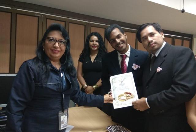 Giovanny Vareles y Borys Álvarez festejaron su unión matrimonial en el Registro Civil de Guayaquil.