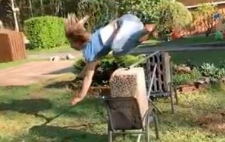 Utilizando sus manos como si fueran patas delanteras, la mujer galopa como si se tratara de un equino, logrando dar increíbles saltos.
