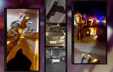 Según el informe oficial, personal de la Policía Nacional del Ecuador fue alertado sobre la presencia sospechosa de un automotor en la avenida Iloñalo y General Enríquez. Al intentar detener la marcha, los ocupantes emprendieron la fuga, iniciando así una persecución que culminó en la avenida Alfredo Gangotena, donde los gendarmes, a bordo de un patrullero, interceptaron el vehículo.