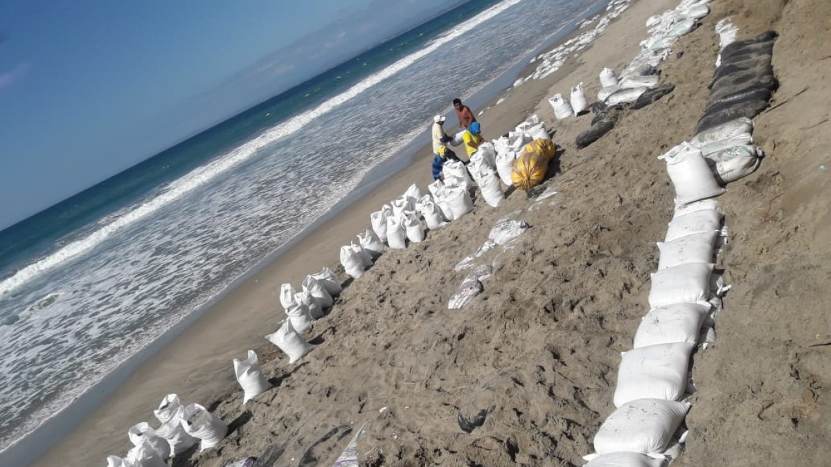 Luis Tenempaguay, presidente de la Cámara de Turismo en esta zona indicó que por la emergencia en minga los comuneros construyeron muros provisionales de contención, para ello se colocaron 2.000 sacos de yute llenos de arena y de esta manera evitar que el mar llegue hasta donde están ubicados sus negocios.