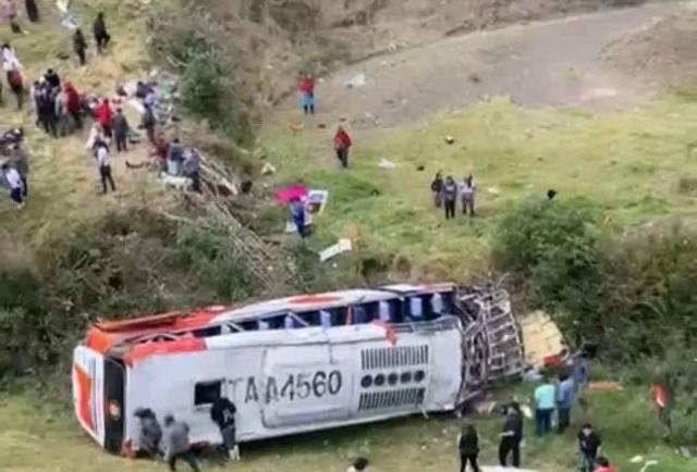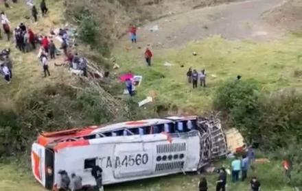 Un accidente de tránsito en el sector de Pangor, Colta, sacudió la tarde de este miércoles 27 de agosto. Un autobús perdió pista y cayó a un barranco de aproximadamente 150 metros, según los primeros reportes.