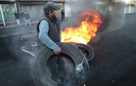 En la Avenida Maldonado, por el sector de Guamaní, manifestantes quemaron llantas e impidieron el paso a los vehículos. Algunos querían pinchar los neumáticos de las furgonetas que trasladaban a los 'vecis' que se dirigían a sus destinos.