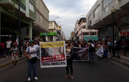 La caminata que partió desde la el parque “Diego Minuche Garrido” avanzó hasta los bajos de la Corte Provicial de Justicia y Fiscialía. Allí los manifestantes pedían ser recibidos por el juez y fiscal que llevan la causa.