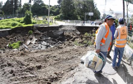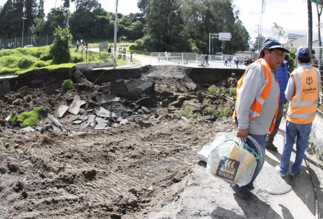 El sábado 16 de junio en la noche, un gran socavón se llevó dos automotores en el puente sobre el río Santa Clara, en Rumiñahui, al oriente de Quito.
