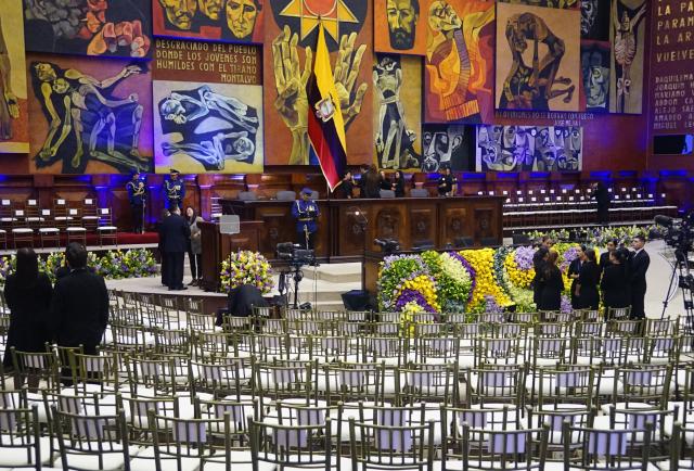 Desde tempranas horas, un amplio despliegue de seguridad militar y policial se realizó en los alrededores del Palacio Legislativo, en el centro-norte de Quito. Calles como la 6 de Diciembre y la avenida Gran Colombia fueron cerradas, mientras equipos de seguridad ejecutaban controles estrictos a los medios de comunicación, invitados y funcionarios.