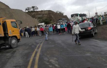Piedras, troncos y todo lo que estaba a su alcance, servía para que un grupo de habitantes del Valle del Chota bloquearan la Panamericana Norte, sector de Mascarilla, cantón Ibarra, provincia de Imbabura.
