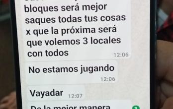 Durante el último fin de semana, varios dueños de negocios recibieron mensajes por WhatsApp en los que se les exige dinero a cambio de no atentar contra su integridad. En uno de esos mensajes se advierte: “La próxima, volaremos tres locales”.