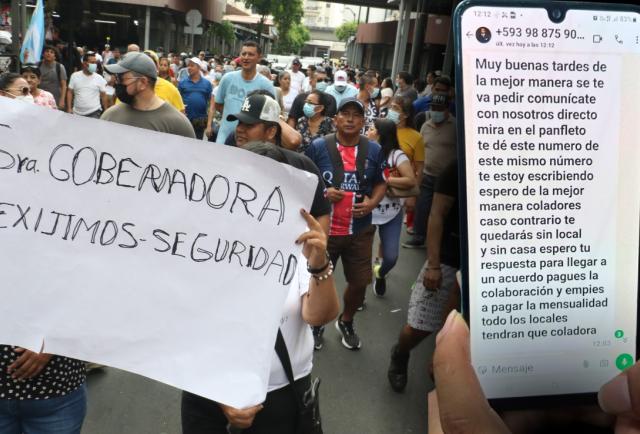 “Esto no había pasado antes. Estamos asustados porque ahora enviaron panfletos y mensajes exigiéndonos 200 dólares semanales. Queremos seguridad”, manifestó Mariana Zambrano, quien desde hace 22 años tiene un negocio de papelería en el centro de Guayaquil.