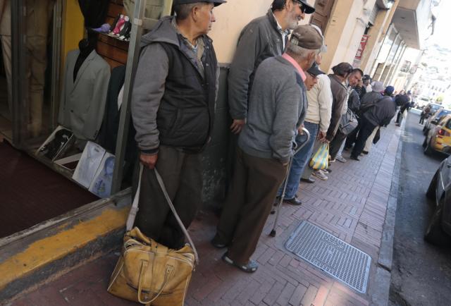 Amanece. Es viernes. Poco a poco el Centro Histórico de Quito cobra vida y una larga cola llama la atención en las inmediaciones de la calle Mejía. Unas sesenta personas de rostros cansados, miradas caídas y trajeadas con ropas deslucidas hacen fila. Algunas conversan entre sí, mientras otras solo callan. La mayoría son hombres.