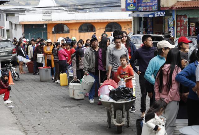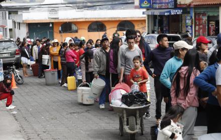 Los vecinos del sur de Quito forman filas con baldes, carretillas y hasta cochecitos de bebé. Hay incertidumbre por los días que durará la emergencia