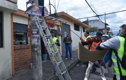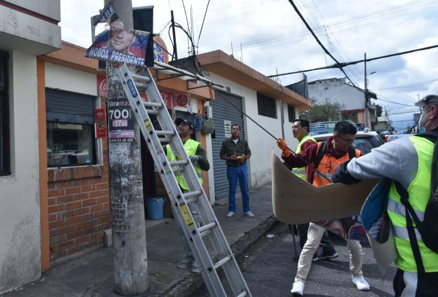 Después de las elecciones, Quito enfrenta la resaca visual de pancartas y afiches pegados por toda la ciudad. La AMC empezó a retirarlos