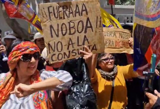 Miles de ciudadanos se dieron cita para respaldar a Noboa e increpar a los jueces de la alta corte. Sin embargo, a las protestas también acudieron algunas personas que rechazan las medidas tomadas por el Gobierno Nacional.