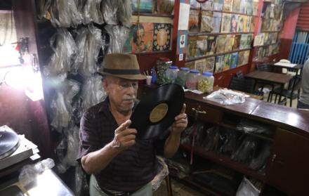 “Primero estaba ubicada en la calle Colombia. El dueño original, don Amador Limones, falleció hace cuatro años. Él era aficionado a coleccionar discos de vinilo, todas las semanas iba a las tiendas a adquirir más. Algunos aún tienen marcado el precio. Sesenta y cinco sucres valían en esa época”, detalla.