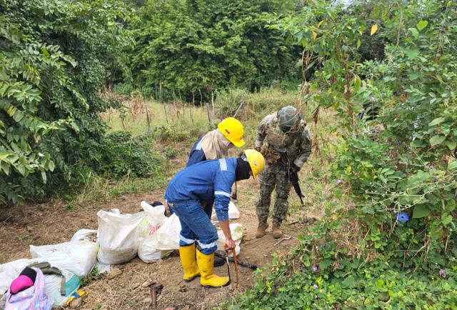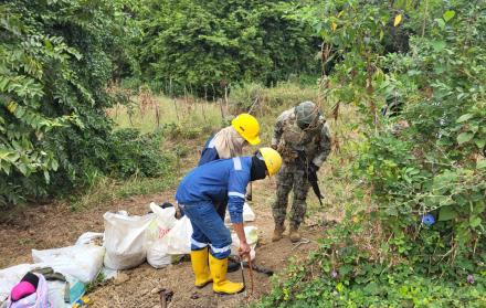 "A menos de 300 metros de este punto ocurrió el ataque. Nosotros llegamos porque Petroecuador nos reportó una baja en la presión del combustible. Estas mangueras conectadas de manera ilegal sirven para el robo de hidrocarburos", explicó un uniformado de las Fuerzas Armadas que participó en la inspección.