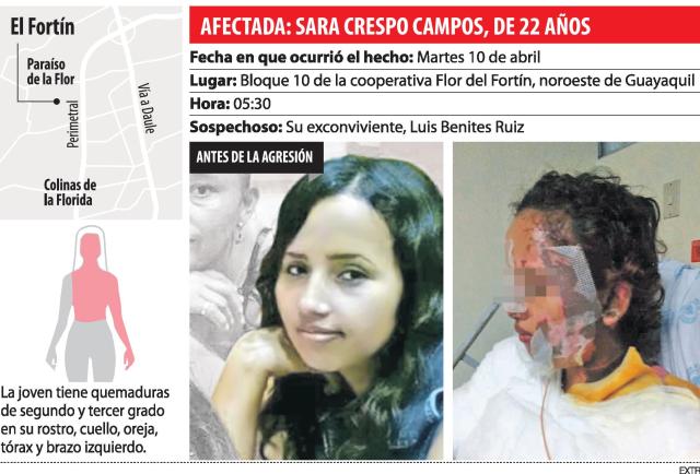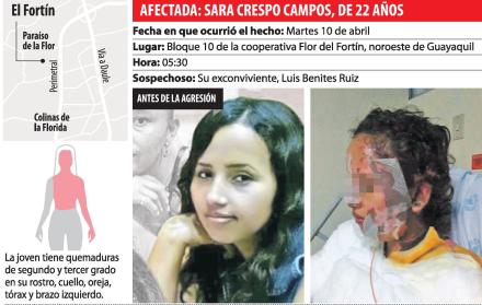 Su pesadilla parece no tener fin. Sara Crespo Campos, de 22 años, no puede borrar de su mente el momento en que fue atacada con ácido, hecho que la mantiene sufriendo en la cama del hospital Luis Vernaza de Guayaquil.