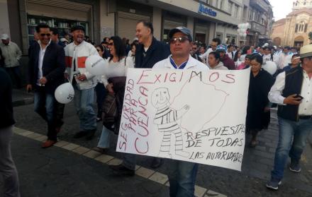 Los cuencanos se movilizaron este viernes 19 de julio de 2019 en contra de la inseguridad ciudadana. Fue con una marcha que recorrió las principales calles céntricas de la urbe.