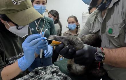 El equipo técnico de rescate, en coordinación con el Zoológico de Guayllabamba, realizó una primera revisión médica en el sitio, y luego trasladó al ejemplar a sus instalaciones para recibir atención de urgencia. La cóndor presentaba una condición corporal extremadamente baja, temperatura descendida y mostró signos clínicos como arcadas y vómito, lo que hace sospechar de una posible intoxicación.
