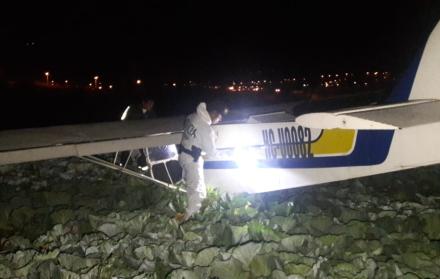 Momentos de terror vivieron por unos minutos los dos tripulantes que iban en la avioneta que aterrizó de manera forzosa en la parroquia Izamba en Ambato, provincia de Tungurahua la noche de este miércoles 22 de mayo de 2019.